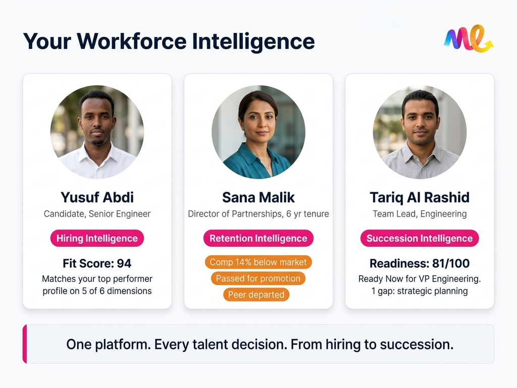- Every hire reshapes the company. Score candidates in minutes, flag flight risk in weeks, and surface internal growth paths. First intelligence in days, not quarters. No ATS required.